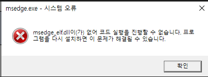 : "msedge_elf.dll이(가) 없어 코드 실행을 진행할 수 없습니다. 프로~~~" (이미지 참조)